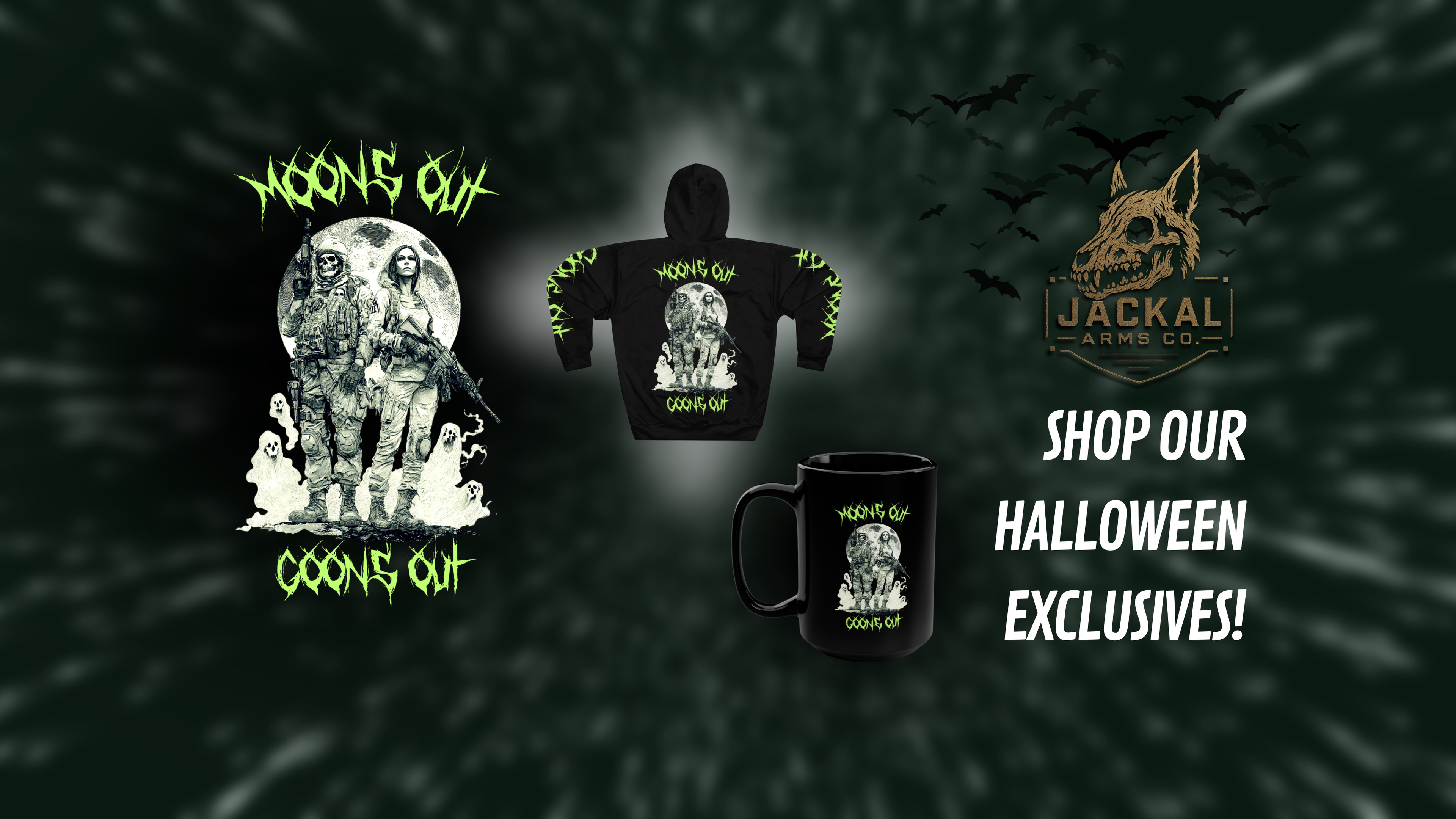 Jackal Arms Co. Moons Out, Goons Out Halloween Hoodie Range Drip
